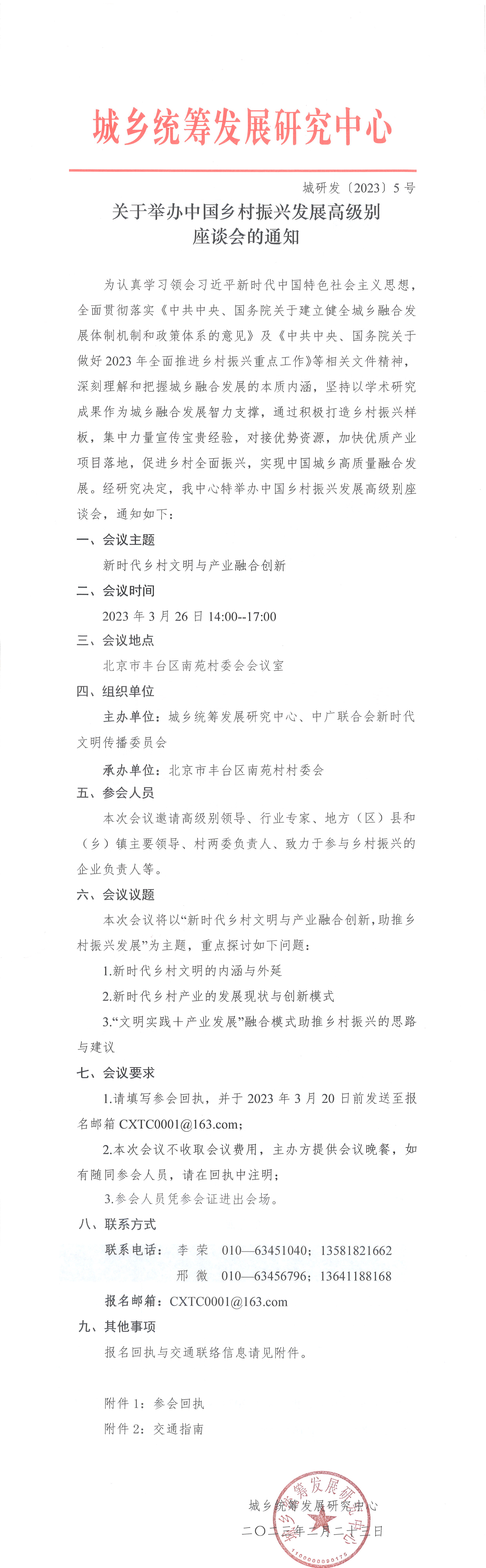 关于举办中国乡村振兴发展高级别座谈会的通知