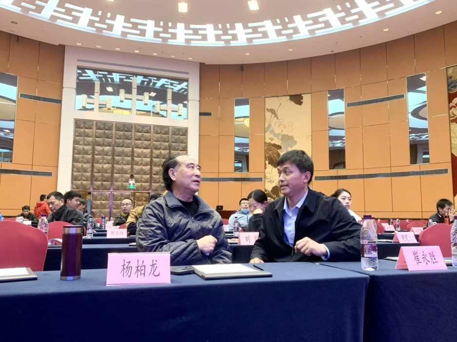 中心工会主席、国家级社会体育指导员孙衍群(右1)向杨柏龙教授探讨全民健身如何更好的扎根基层工会的相关问题